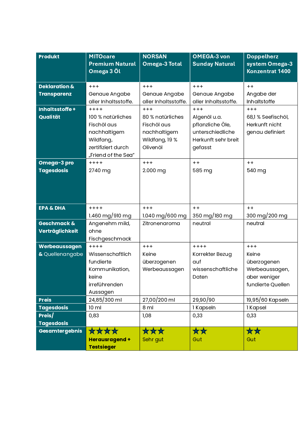 Produkttest Omega-3-Fettsäuren